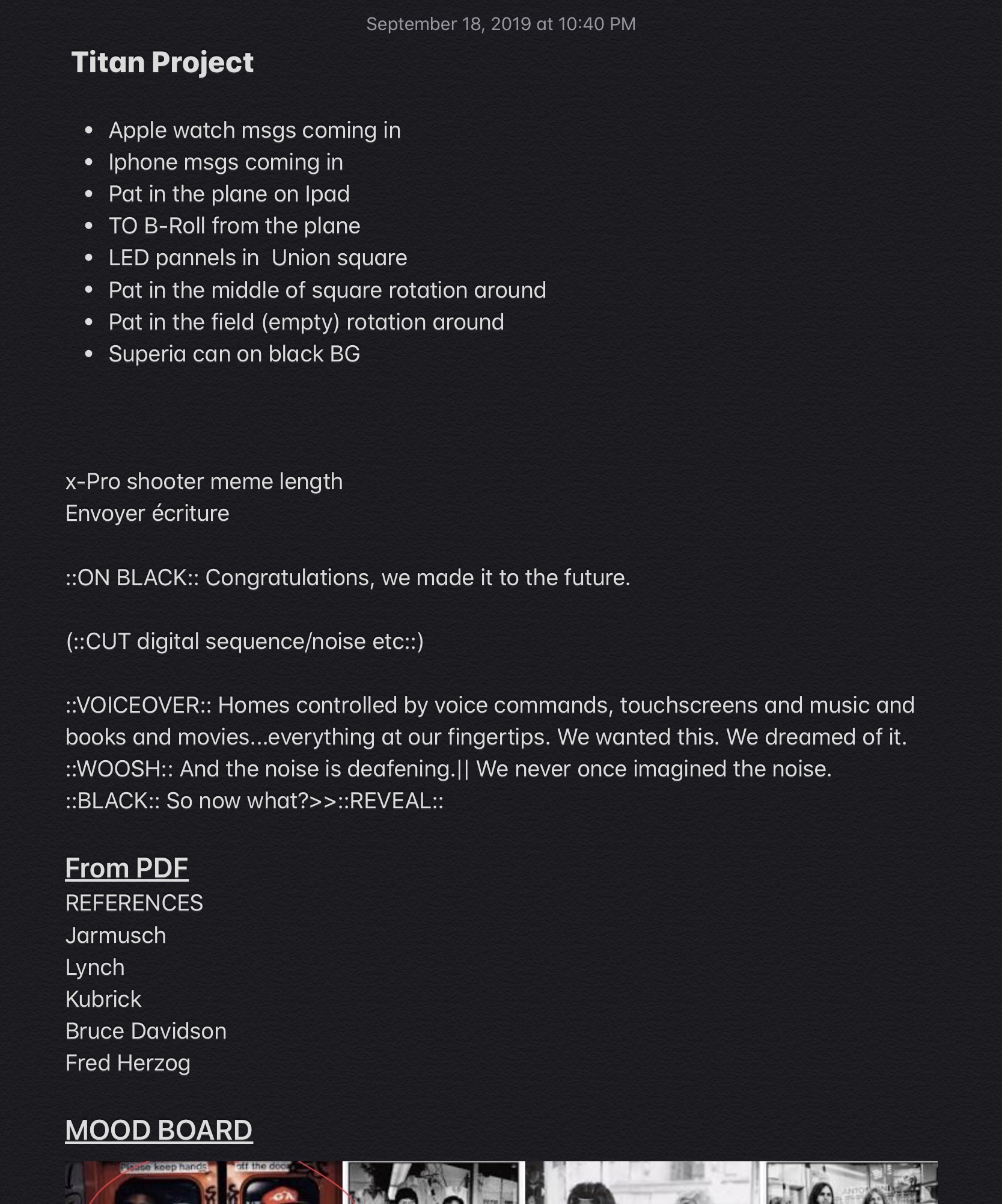 Once I got back to my room I decided to review the footage I had and started taking screen shots and putting word Under them to our share notes so that Patrick could start writing a narrative and help me visualize the final video. Patrick was stocked on the scenes so that gave me a boost.