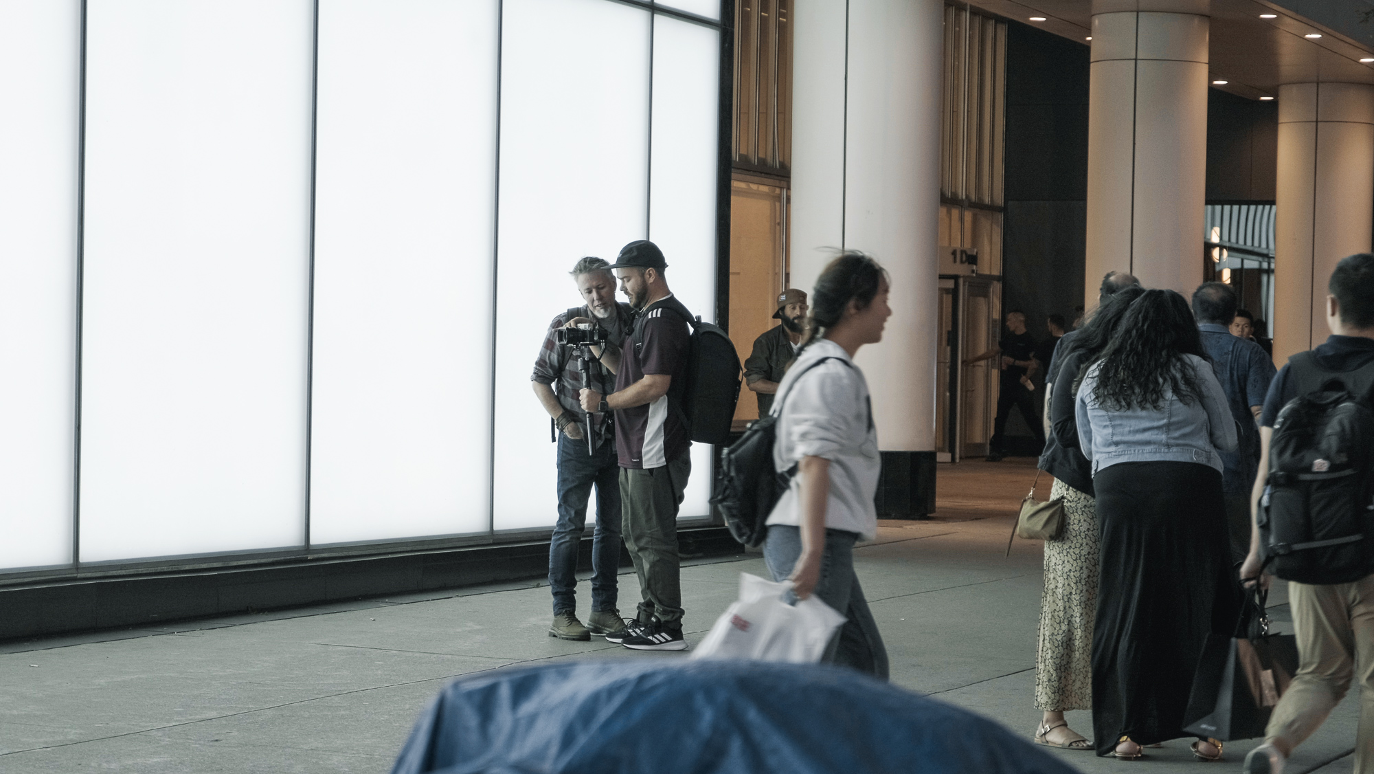 From the first talk I’ve had with Billy he came up with the idea or the ‘’Technology overload’’ which I really loved from the start. We always have chats to brainstorm about the general idea, scenes and mood. We then move to a meeting between the 3 of us to kind of put Patrick up to speed and brainstorm further more. We wanted to film in Toronto to have a bit of a change of scenery and utilize Dundas and Yonge square as it has very bright LED Ad panels, kind of a mini time square, perfect for the opening scene.