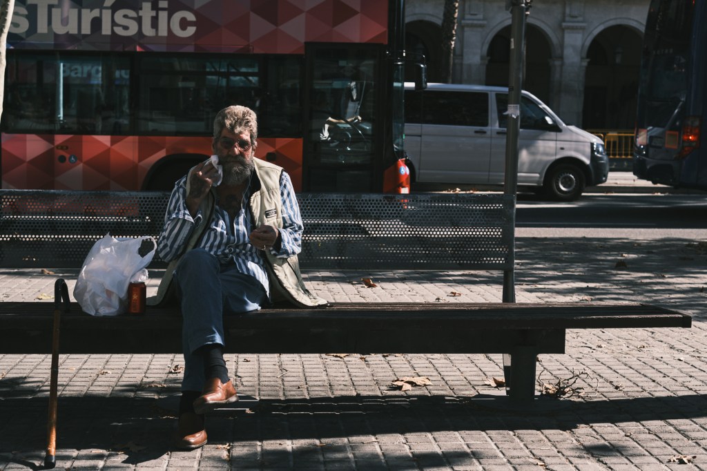 We hop in a cab an head to this place Gab and Omar knew and really liked. Tapas, sounds great right? I thought so too. We get there, crazy line to get in, we sit at the ”bar” area to wait. Gab and Omar order drinks, I don’t drink so i’m good I’ll just wait. The guy behind the bar decides though that I want water, i’m like ”aight cool”. I then see a water bottle and right before I can say ”nooooo” I hear the seal break and in my mind i’m just like ”There goes 5 Euros…” and I was right. We order food and nothing seems really appealing to me… ordered shrimps and potatoes… tiny portions, high prices. that was disappointing but life goes on. Omar’s friend who’s originally from Montreal but moved to Barcelona was with us and at some point went out for a smoke.